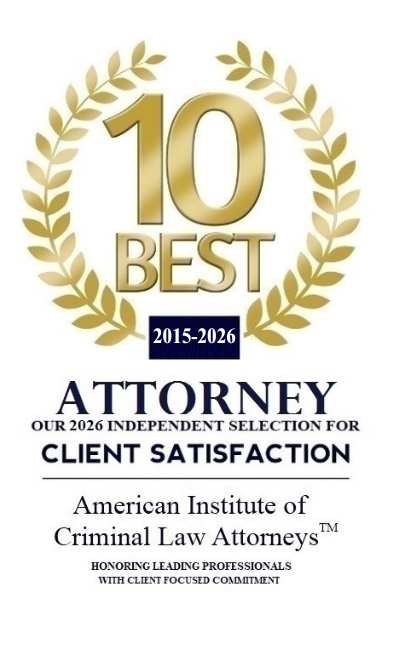 American Institute of Criminal Law Attorneys "10 Best" Client Satisfaction Award from 2015-2025